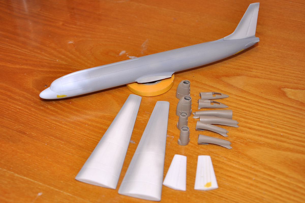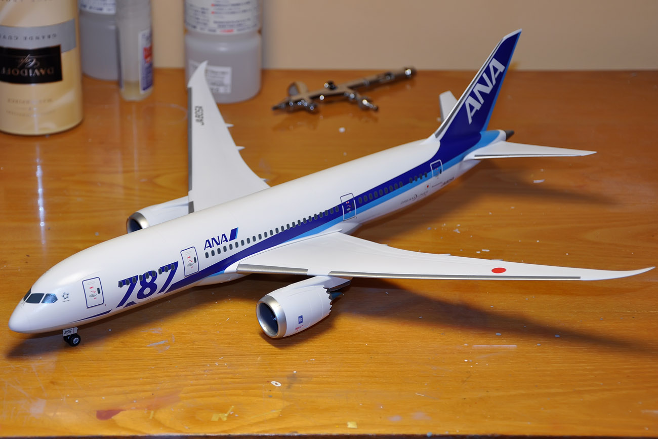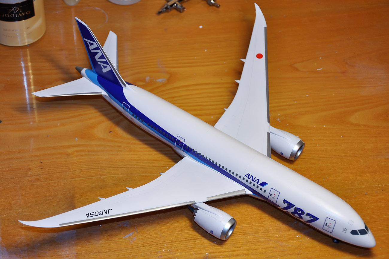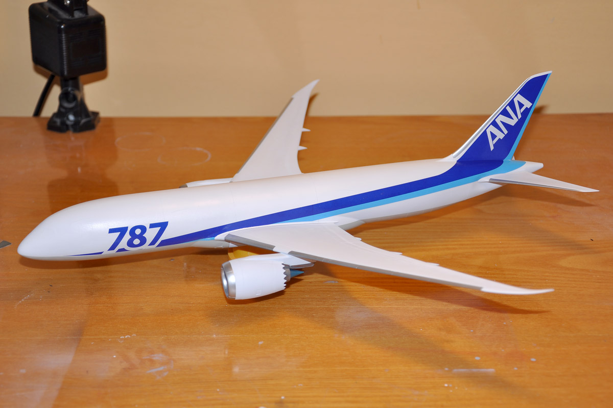 Dreamliner - nafoukal jsem křídla a šedý spodek. Ještě fouknu šedý spodek křídla, APU, dodekáluji a je hotovo