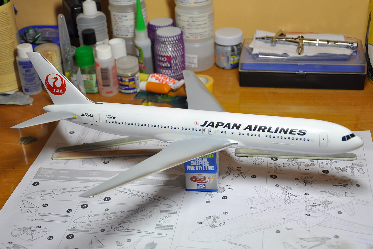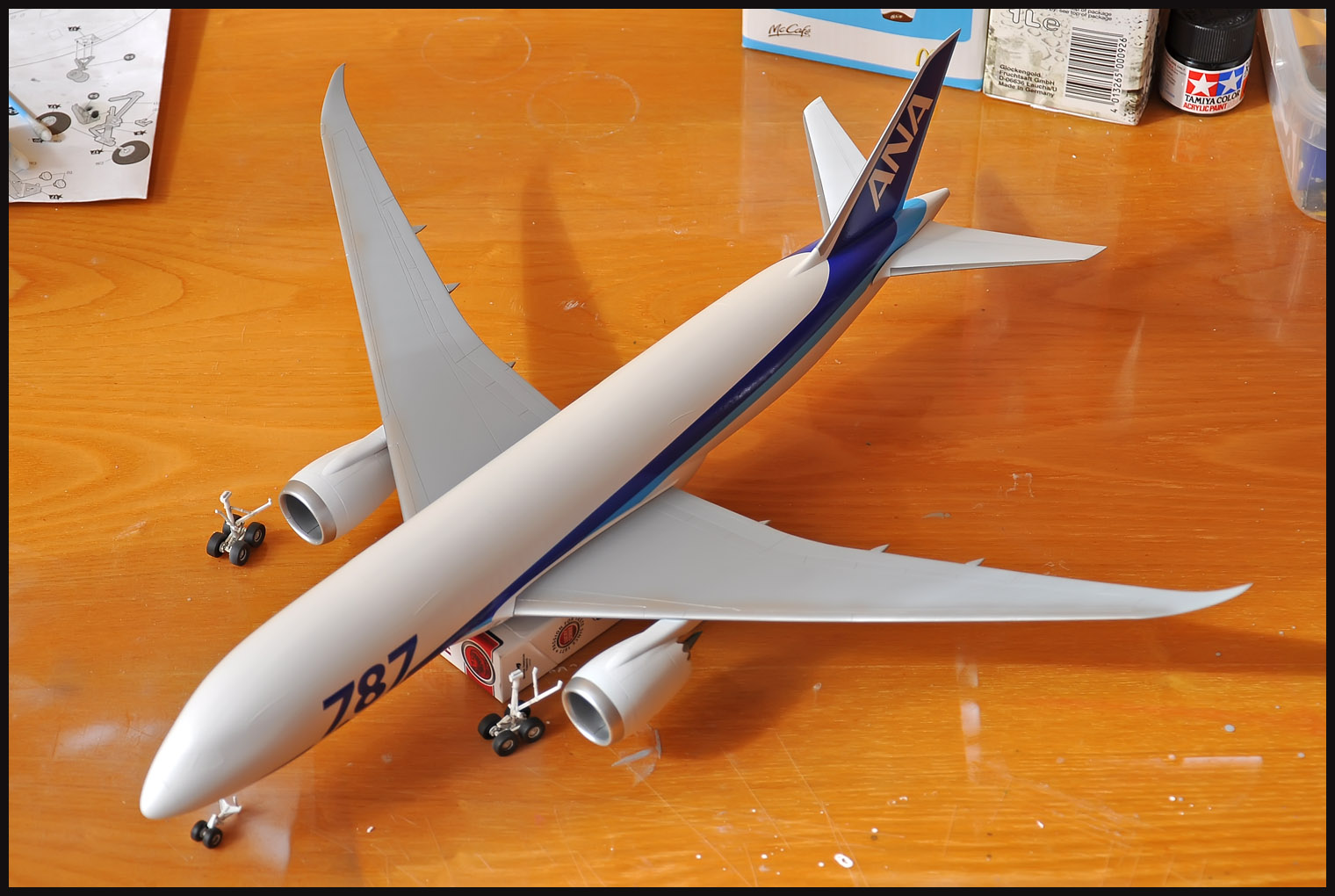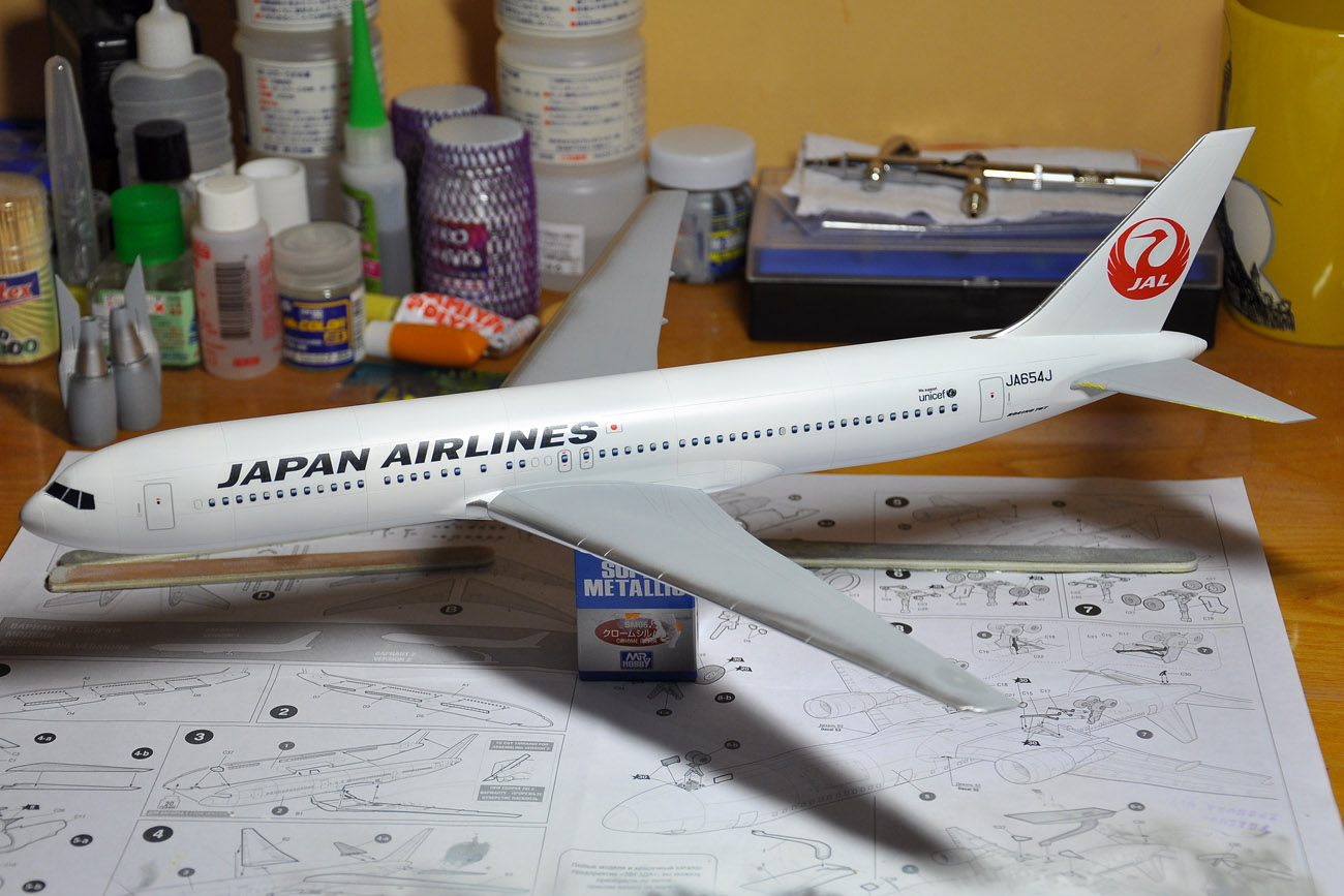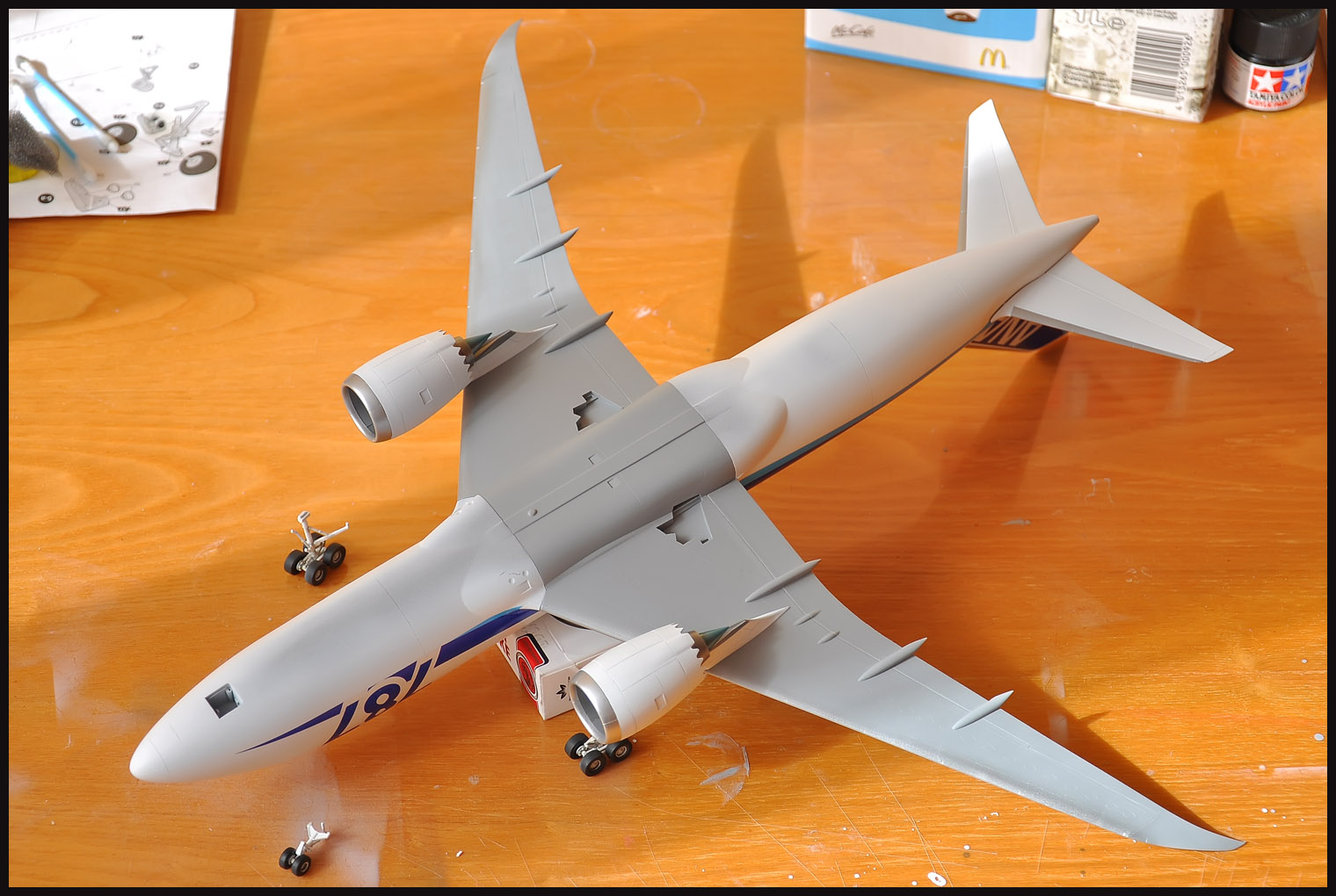 Dreamliner - nafoukal jsem křídla a šedý spodek. Ještě fouknu šedý spodek křídla, APU, dodekáluji a je hotovo