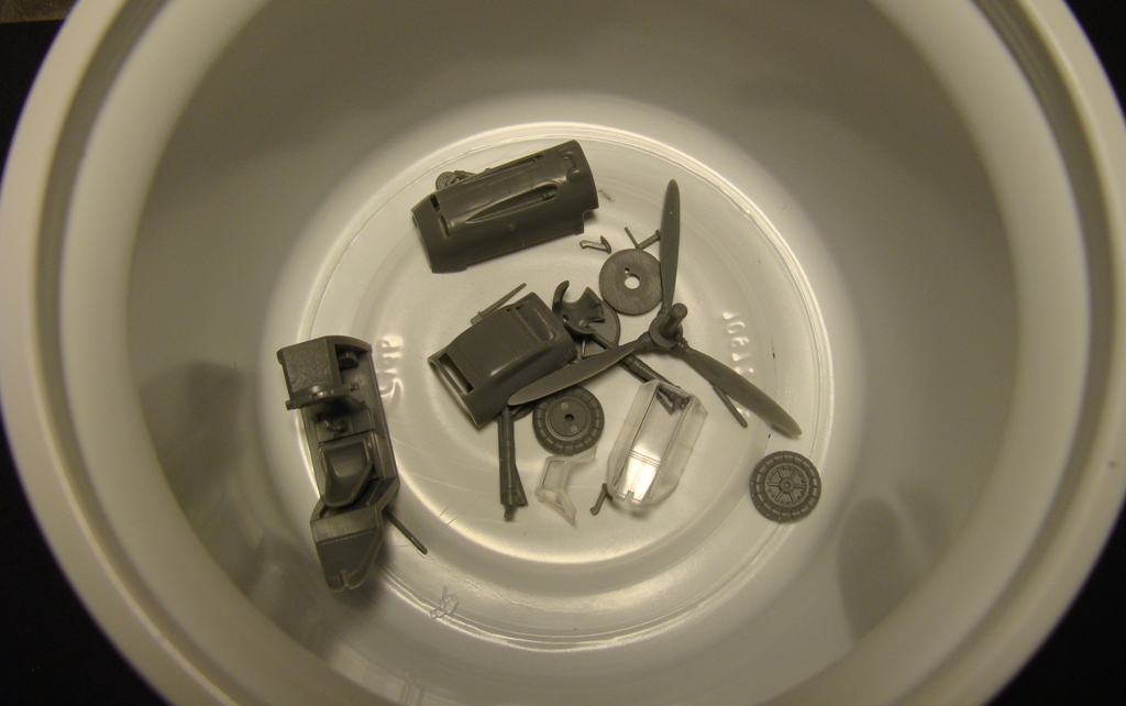 Zatim mám slepný křídlo, kokpit a začištěný všechny díly