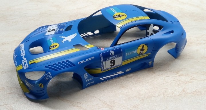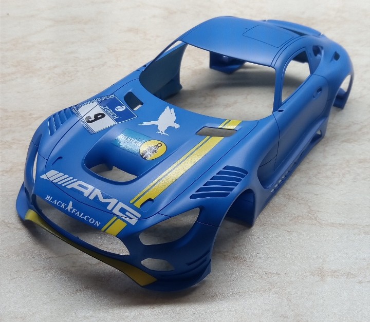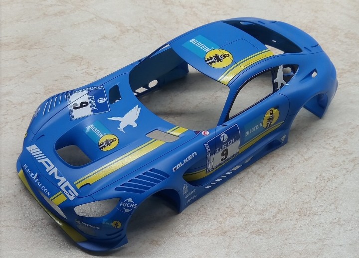 Přes Vánoce jsem začal dělat na novým okruháči. Tentokrát 24 hod Nürburgring, Mercedes AMG GT3. Dekály od Hobby Design na Team Black Falcon. Zatím mám začištěny všechny díly a kastli v bílým surfu. Teď je na řadě modrá od Zera.